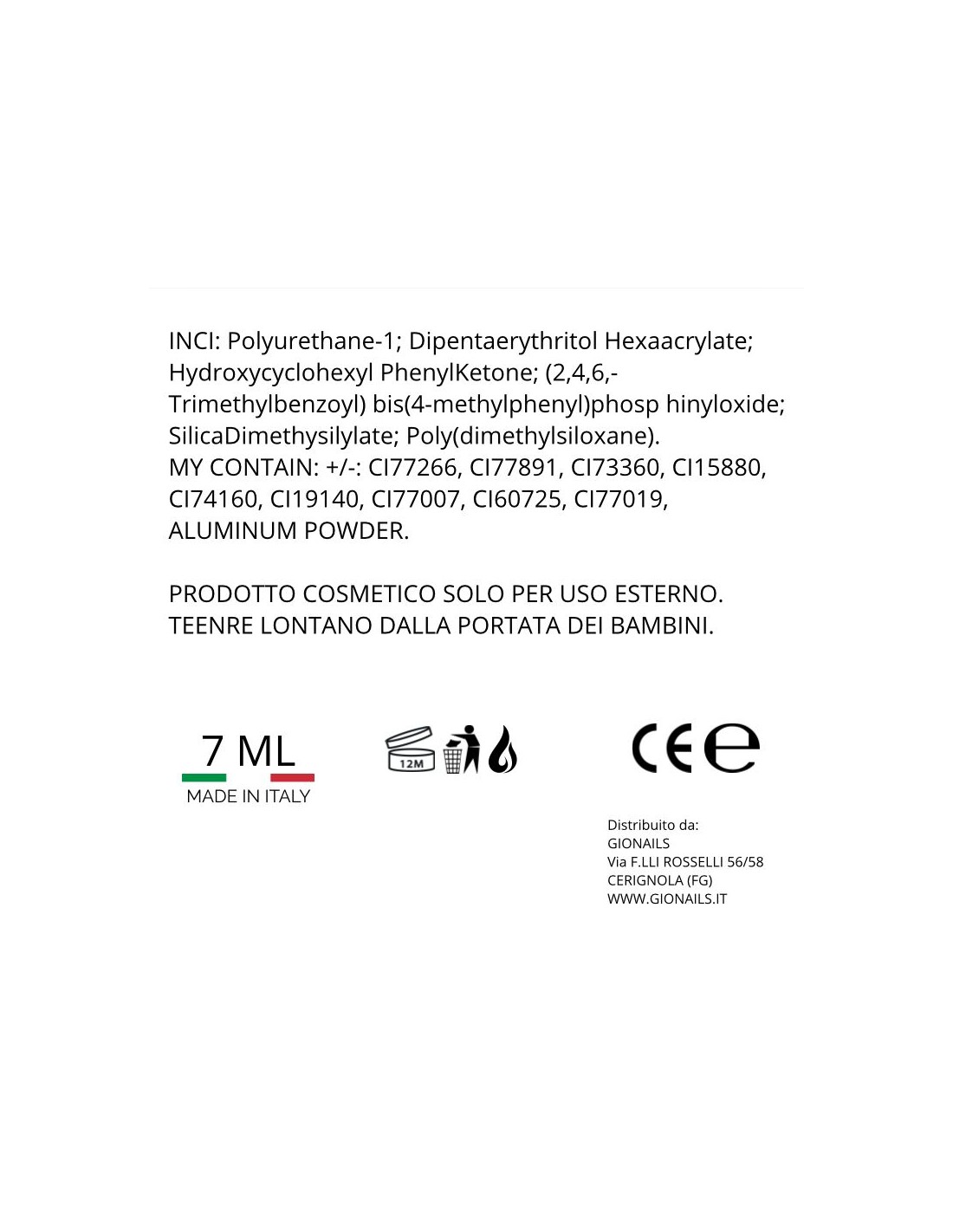 PRODOTTO COSMETICO SOLO PER USO ESTERNO.